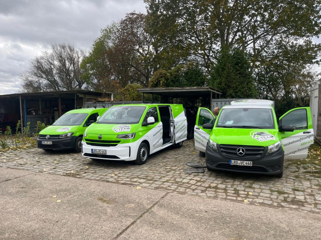 V-Team ist ein erfahrenes Entrümpelungsunternehmen, das sich darauf spezialisiert hat, Haushaltsauflösungen, Entrümpelungen und Gewerberäumungen professionell und zuverlässig umzusetzen. Wir wissen, dass jeder Auftrag individuell ist und Aufmerksamkeit bis ins Detail braucht – deshalb bieten wir maßgeschneiderte Lösungen, die Ihren Anforderungen entsprechen. Ob privater Haushalt oder Gewerbefläche, wir schaffen Raum, wo Sie ihn brauchen!